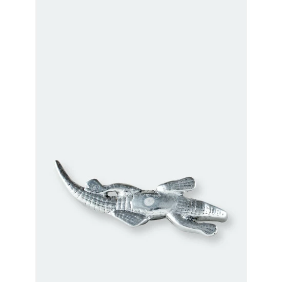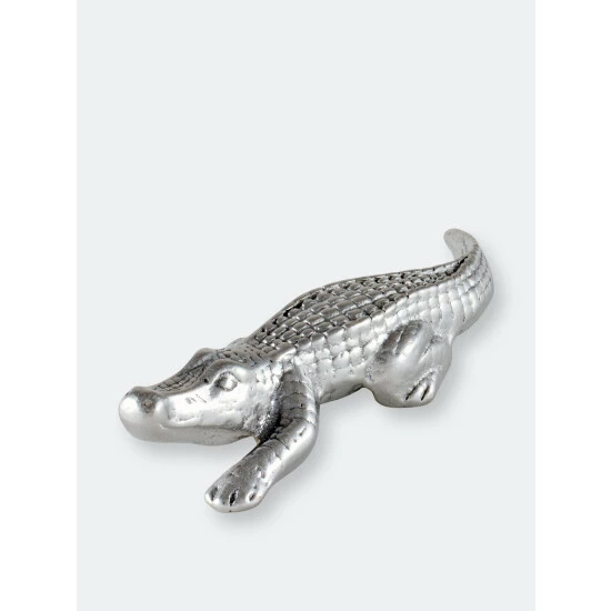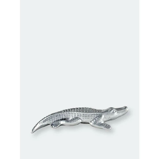 Continue your animal-themed table accents with these Small Alligator Figurines from Arthur Court.An intricately detailed alligator rests in a relaxed posture, gazing up at the people seated around it. Realistically fashioned in sand-cast aluminum, this statuette is perfectly suited to strike up a conversation at the table.