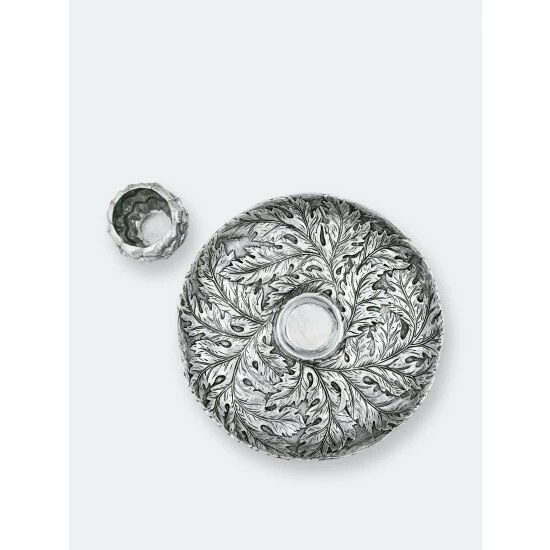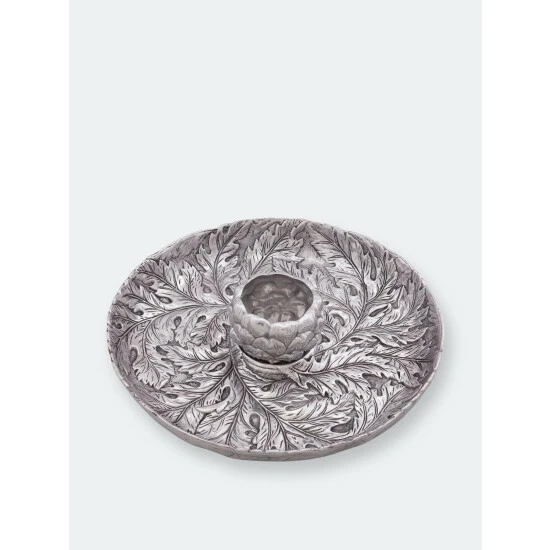 Guaranteed gorgeous, Arthur Court’s unique Artichoke Chip and Dip Serving set is a crowd pleaser. The extra-large platter shines with a bas-relief pattern of intricate, feathery artichoke leaves. A dip bowl shaped as a Globe Artichoke sits center stage to hold your most delicious creations.