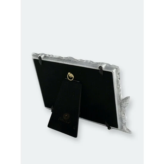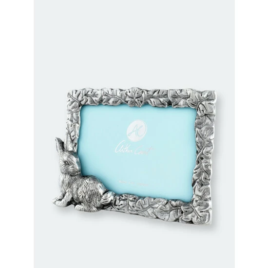 Capitalize on the rustic appeal of this 4×6 Bunny Photo Frame to house a pet picture or nature shot.A dense, textured pattern of leaves borders this piece, while a lively rabbit surveys its surroundings from the bottom-left corner. The handmade, aluminum frame’s elegant detail offers a warm finish to any photo.