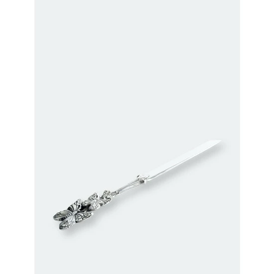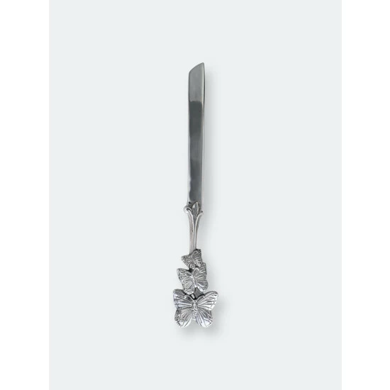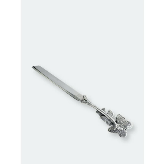 Fly towards your next birthday with the Butterfly Cake Knife from Arthur Court.Three, intricate butteflies shrink in size as they seemingly float up the handle of this handmade, aluminum knife. Exquisite lines pattern the insects’ wings, while the sleek blade looks stunning in contrast to its fluttery counterparts.
