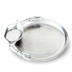 Watch over your favorite appetizer with the helpful guard in Arthur Court’s Crab Chip and Dip. As if lounging in a hot tub, an intricate crustacean hangs its eight legs over the side and rests its claws on the rim of this dish. The smooth interior of this handmade, aluminum piece displays a brilliant luster against the crab’s textured body.