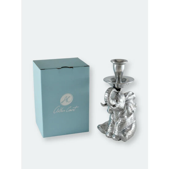 To welcome positive energy to your home or office, place one or more of Arthur Court’s Elephant Candle Holders facing the front entrance. The raised trunk on our delightfully detailed Elephant figure symbolizes good luck. It also supports the rimmed taper candle cup on these enigmatic figures of the gentle giant.