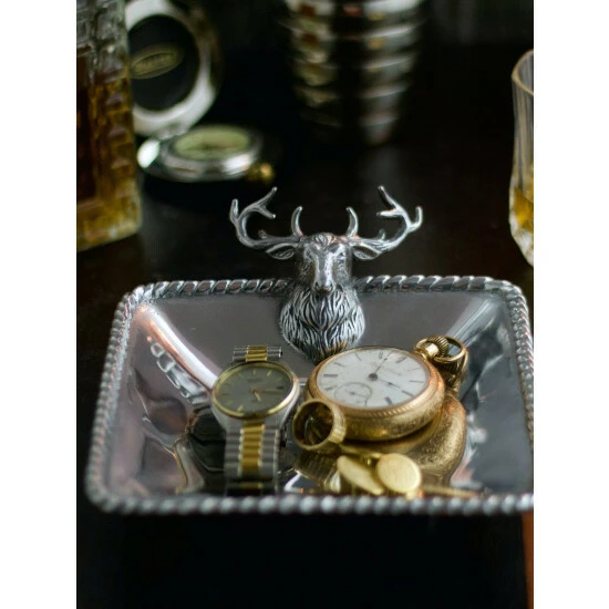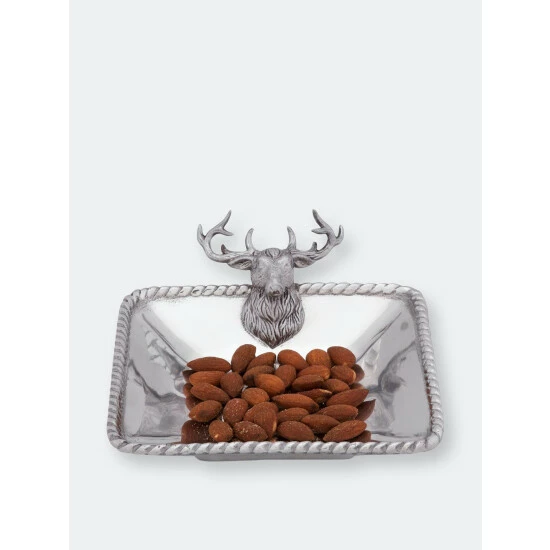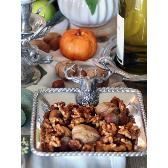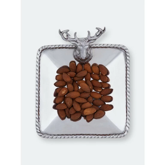 Serve nuts in spectacular style with Arthur Court’s Elk Head Nut Bowl. So unique, this bowl will start conversations while serving snacks.This coupe style bowl in Arthur Court’s signature aluminum alloy gets regal style from a cast Elk head attached to one side and a braided style decorative rim. Adds unique style serving nuts, candies and other on your entertaining table.
