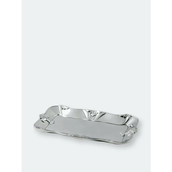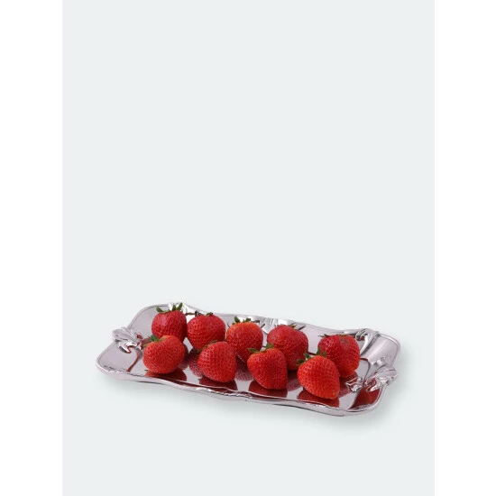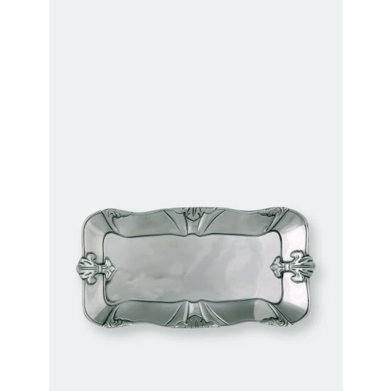 Matching fleur-de-lis symbols sit prominently on each end of this piece, while partial emblems seem to fade off the sides and corners. The design offers a unique visual display and gives the handmade, aluminum tray a slightly wavy shape.Bake more often to show off this brilliant 6×12 Fleur-De-Lis Bread Tray from Arthur Court.