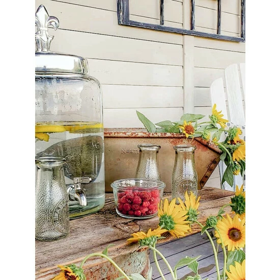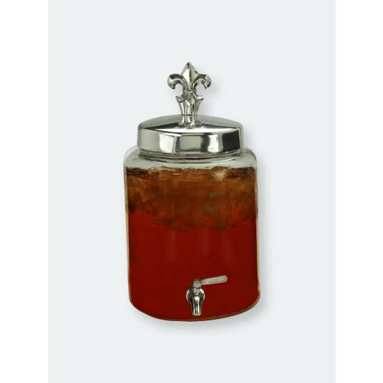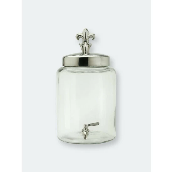 Give your guests the royal treatment, serve refreshing libations from Arthur Court’s French Lily “Fleur dis Lis” Beverage Server. Topping the highly polished, signature aluminum alloy lid of is a large, stylized finial depicting an elegant French Lily “Fleur de Lis”. The jar of Arthur Court’s generously sized, 2-gallon beverage server is crafted from recycled glass. A stainless-steel