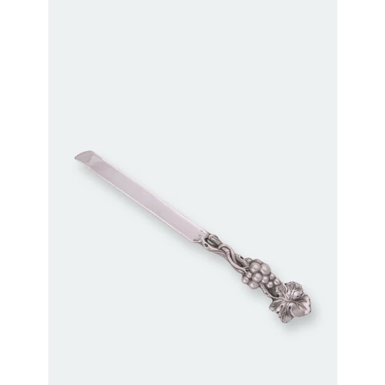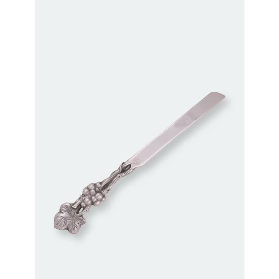 Cut wedding and specialty cakes with style with our beautifully detailed grape cake knife. Intricate vines twine around the handle of the knife , while graceful grapes adorn the middle part of the handle, providing a sturdy grip when you have to get the cut just right. Beautifully gift-boxed.Vines connect a leaf and a bundle of grapes together on the handle before running up the neck and infusing with the blade. Its clean edges and gleaming finish contrast beautifully with the movement and varied texture of the grip.