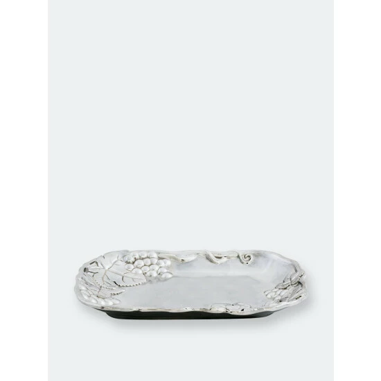 Welcome the spirit of the vineyard onto your table with this Grape Catch All from Arthur Court. Grapes and leaves mix in each corner as vines sweep around the edge of this piece. Heavy lines define each vein in the leaves, while the rounded features of the fruit give this handmade, aluminum dish a realistic appeal.