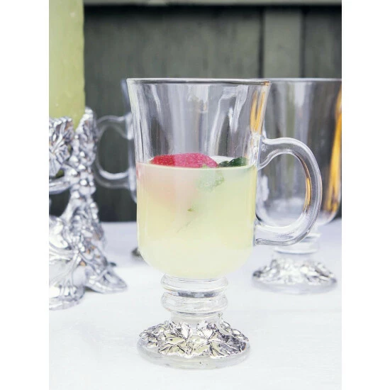 Garnish your next drink with the lustrous design of this 12 ounce, Grape Glass Mug from Arthur Court.As if wind blew brush up onto the table, leaves and grapes circle the base in a natural display of beauty. The handmade, aluminum motif reflects brilliantly in the bottom of this mug as you drink from it.