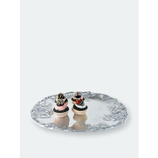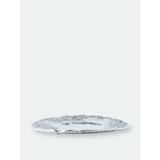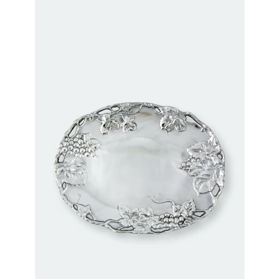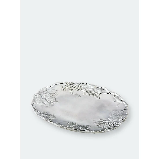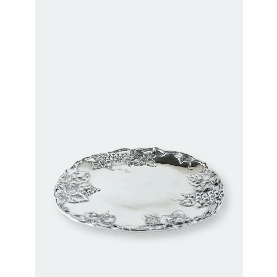 Include nature’s beauty in the design of your serve ware with this Grape Oval Platter from Arthur Court.A layered vine creates the openwork border of this dish as bundles of grapes and leaves mingle just inside the edge. The incredible definition within each veiny blade and piece of fruit gives this handmade, aluminum platter a realistic appeal.