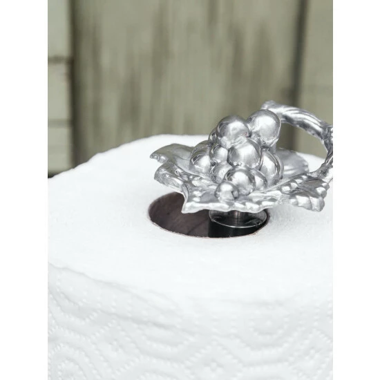 Extending up from the openwork base, a realistic bundle of grapes and leaves stack on top of each other as a curvy vine emerges from the top. Another intricate collection of fruit and foliage heads this handmade, aluminum design as a stylish accent.Complement your Grape Collection with this elegant Paper Towel Holder from Arthur Court.