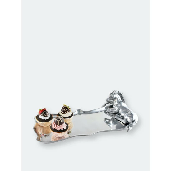 Grip onto this sturdy statuette as you carry Arthur Court’s Horse Figural Platter to the table.A stallion takes a seat on one side of this dish as its long legs settle into the natural position of a horse. Curvy edges surround the animal and the smooth, lustrous interior of this handcrafted platter.