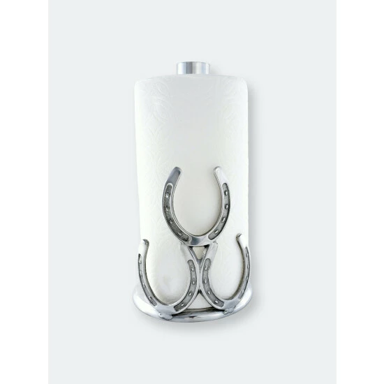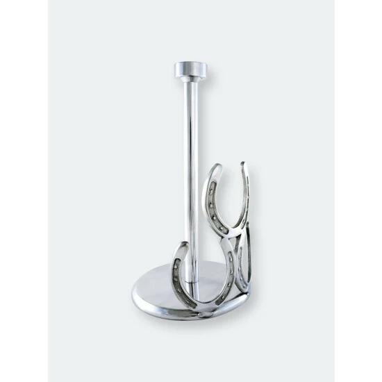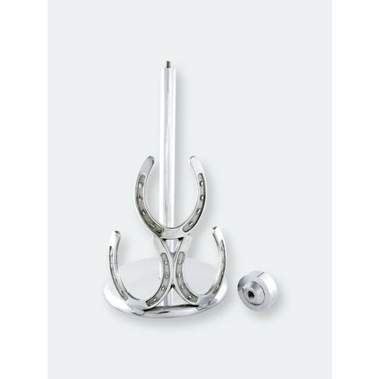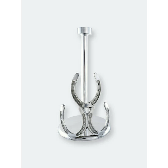 Reflect your passion for riding in any area of the home with this Horseshoe Towel Holder from Arthur Court.Handcrafted in Arthur Court’s signature aluminum, this piece features a long, thick bar extending up from the circular base to support the towels, while a horseshoe stands on its toe next to the pole. Realistic nail markings display inside curved pockets on either side of this design, which looks exceptionally distinguished against the smooth, lustrous surfaces around it.