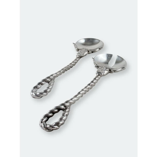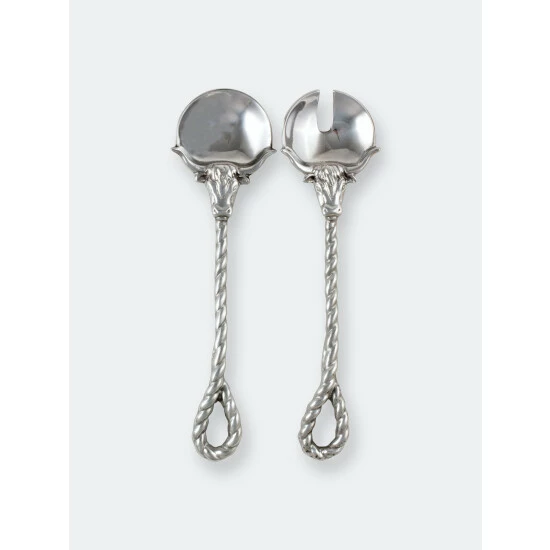 Harness the decorative appeal of this western staple with Arthur Court’s fashionable Longhorn Serving Set.These pieces feature intricate, ropy handles with a thick loop on the end. Realistic steer heads form the neck of each server as their horns extend along the bottom edge of both servers.