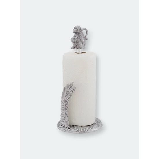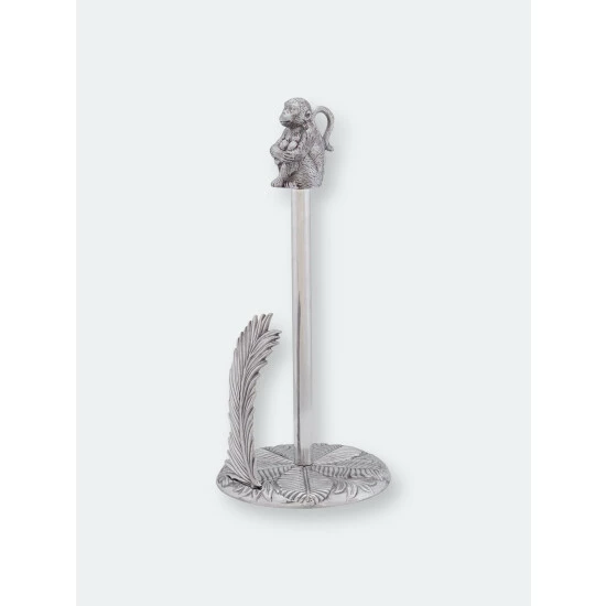 Just waiting for some mischief to make, a happy little monkey finial perches atop Arthur Court’s Monkey Paper Towel Holder. A palm frond rip stop adds even more fun.A cute as a button Monkey final sits atop our Monkey Safari Paper Towel Holder. Crafted from signature Arthur Court aluminum alloy, a standard size roll of paper towels fit the 15-inch-tall holder perfectly. A detailed rip-stop in the shape of a palm frond is the finishing touch for this clever and fun tropical kitchen accessory.