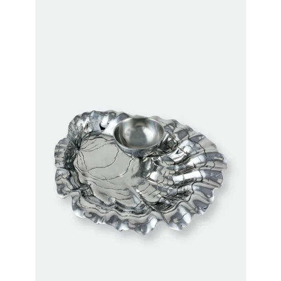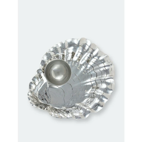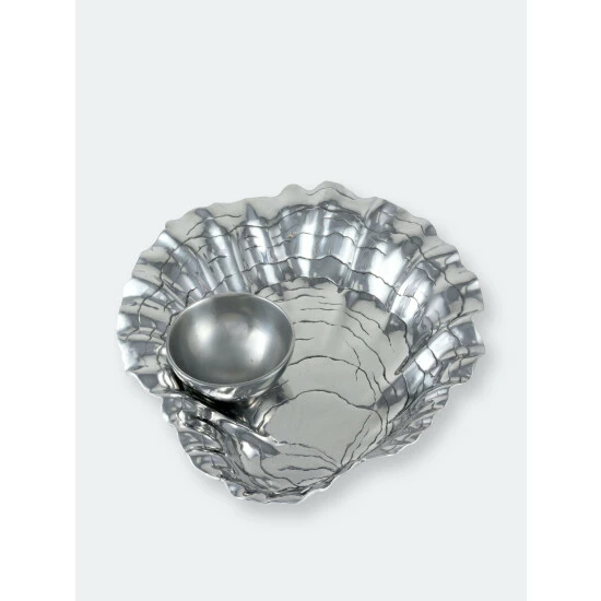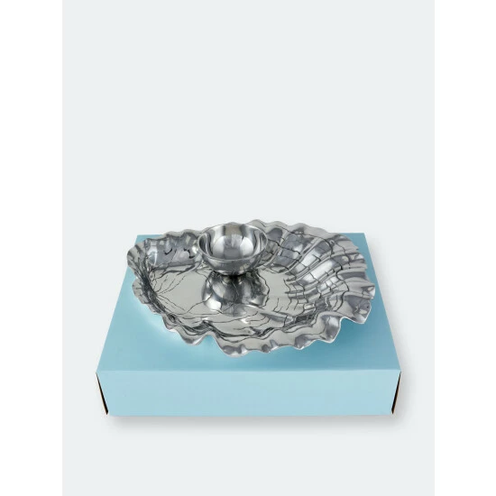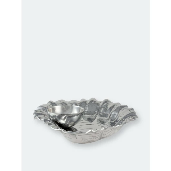 Make Arthur Court’s Oyster and Pearl Chip and Dip the treasure of your serve ware. Heavy, textured lines run across the shell’s interior as the horizontal pattern draws your eyes downward.A second, smaller bowl sits at the basin of the shell and contains a magnificent, pearl-like design. The two pieces, both handcrafted in sand-cast aluminum, combine to create a unique addition to your Coastal Collection.