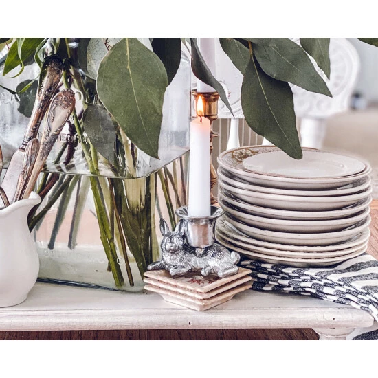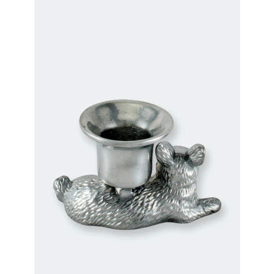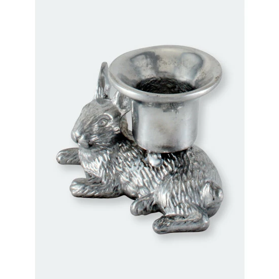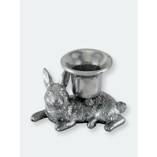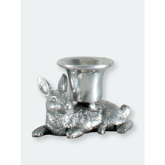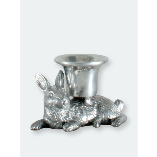 Arthur Court’s laid-back bunny will light up your home not only by holding a taper candle but with the serene sense of calm the metal artwork brings to your table and abode. Delightfully detailed, the rabbit figure rests while holding the taper candle cup on its abdomen.
