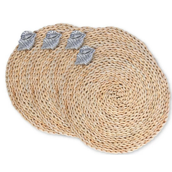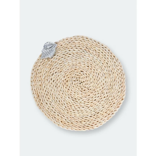 Twisted seagrass is wound like rope to create the natural spiral pattern of our placemats – a graphic way to set a tastefully casual table. A sea shell medallion brings a classic ocean theme to your table.
