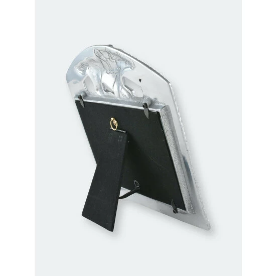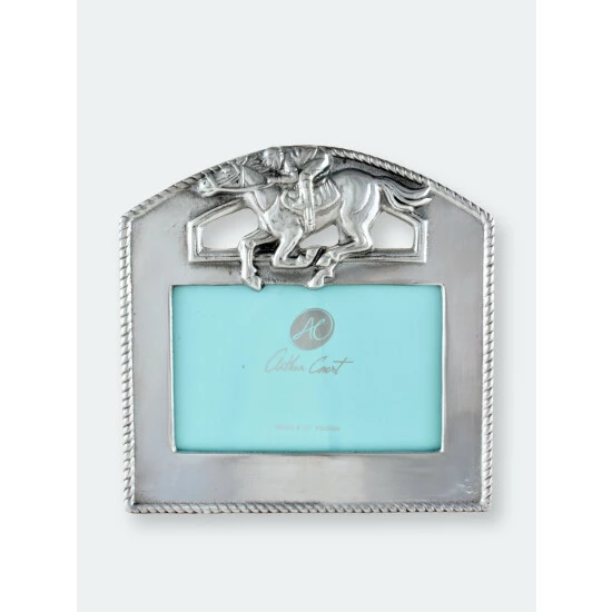 A gallant jockey and championship steed top this Arthur Court thoroughbred photo frame, but if you don’t spend weekends at the track, you can still enjoy the high-quality aluminum finish of this decorative item. Whether your favorite jockey rallies to a win in Louisville or sits across the breakfast table from you, now is the time to showcase winning memories. At the end of the day, life itself is a race, and the corded border on this masterfully crafted item reminds you to rein in the moments that make it all worthwhile. Graduations, weddings or the best family portrait in the county are all worthy events to immortalize in 4 x 6-inch snapshots you can display in this Arthur Court thoroughbred photo frame.A racehorse and its jockey gallop to victory at the top of this piece, their paired intensity radiating off the detailed design, a textured rope borders this handmade, aluminum frame as an additional accent.