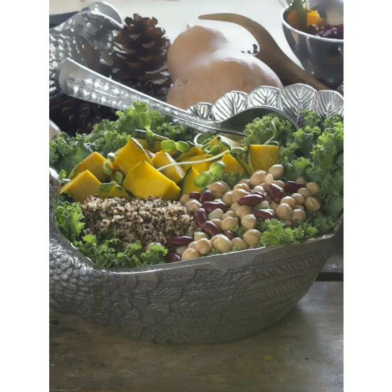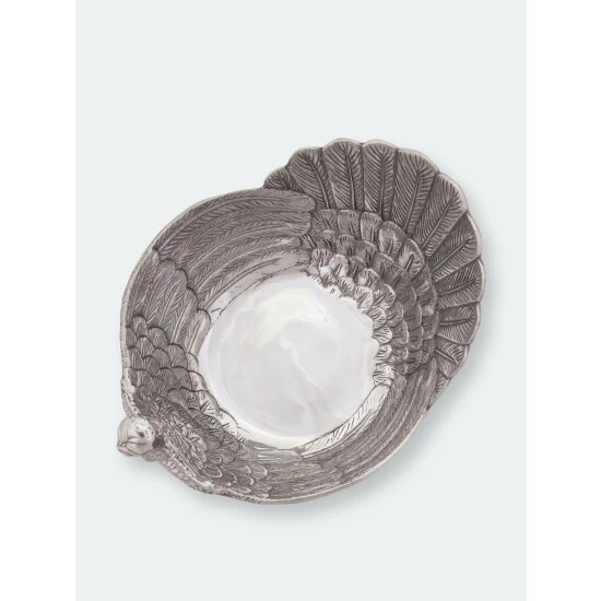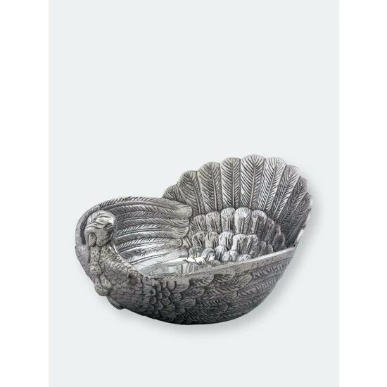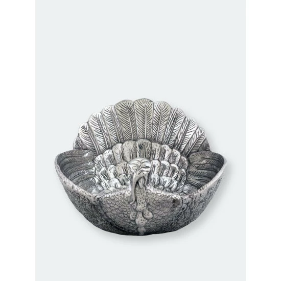 This elegant dish speaks pure festive and Thanksgiving . The detailed handcrafted turkey bowl adds a touch of luxury to your table. The remarkably detailled plumage of the turkey and the overlapping feather layers, turn this bowl into a striking centerpiece. Aluminum has a high thermal conductivity and keeps hot dishes longer hot and has a cooling effect on cold dishes as well.