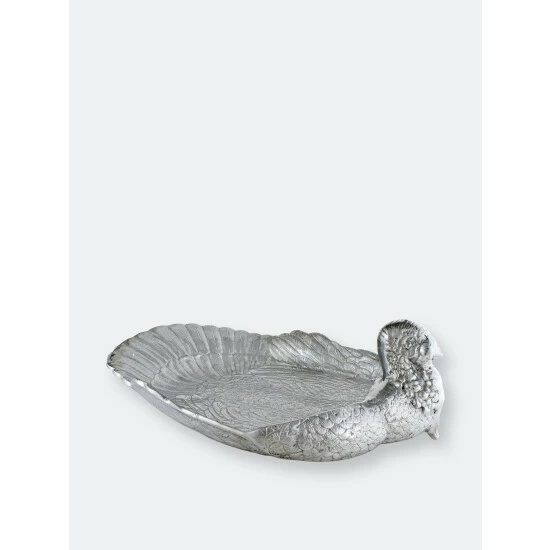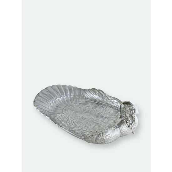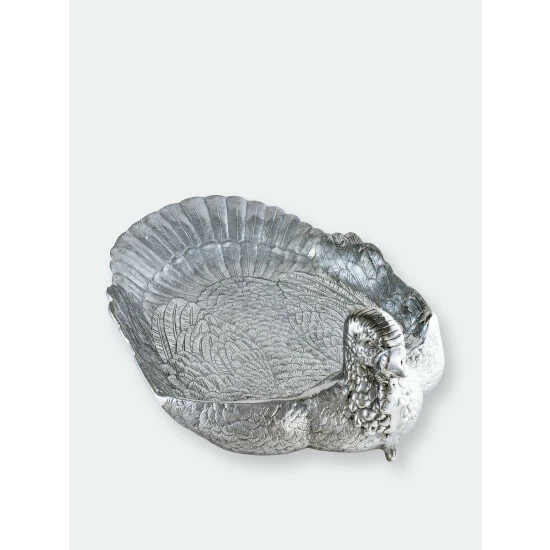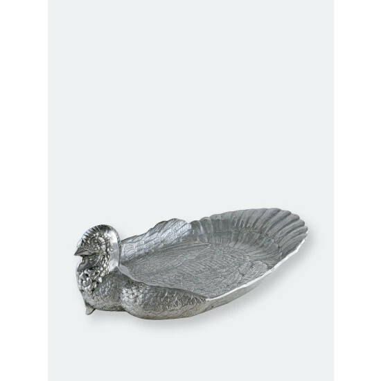 Great for serving game and entertaining a crowd, this Arthur Court Large Turkey Tray features a generous surface area, with the fabulous design and detailing Arthur Court is known for. Supply your guests with a healthy helping of meat out of this Large Tray.The bird arches its head back to reveal a realistically detailed face and wattle, while beautifully defined feathers line the tail and sides of this piece. This handmade, aluminum tray holds an entire turkey and then some as the 24-inch dish leaves plenty of room for sides and garnishes.